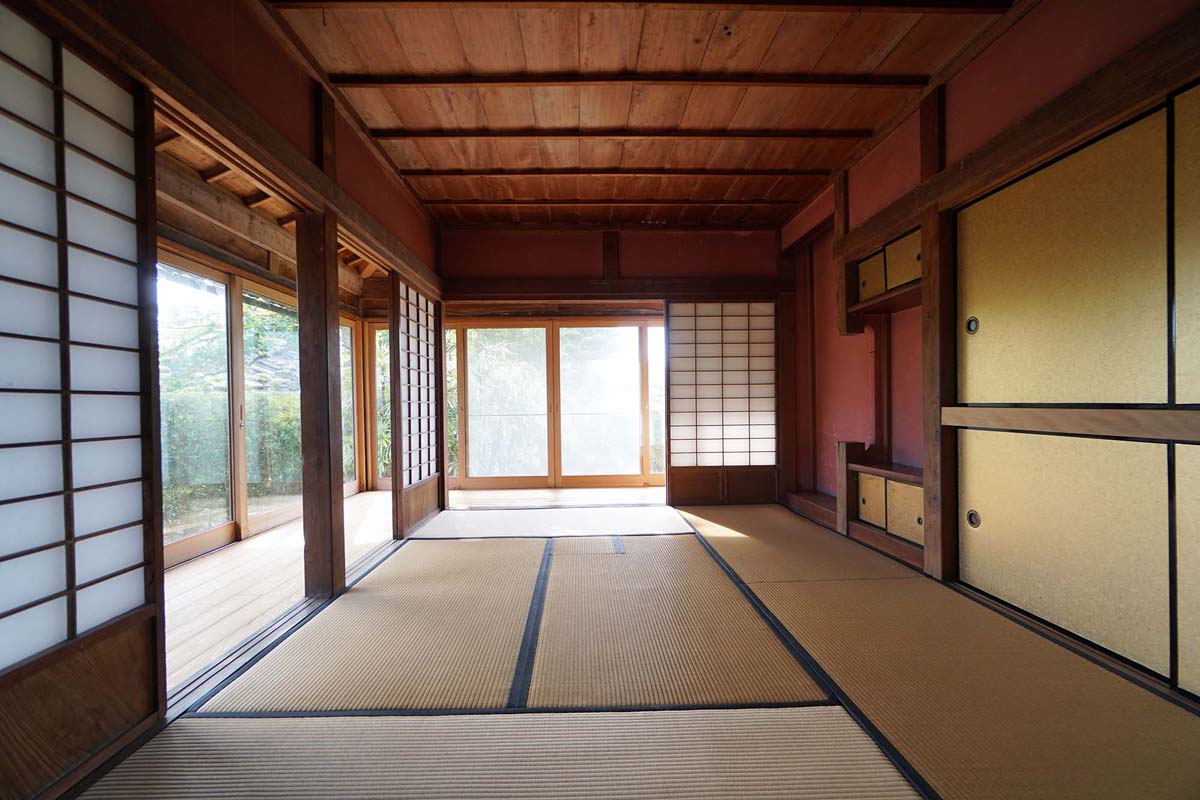 | リノベーション概要 | 薩摩藩の目付で、江戸で学び教鞭をとった後、政府の地方官史だった猪鹿倉兼文(けんぶん)氏が明治20年頃に建てた住宅で、藩政期の松田家住宅跡に旧邸の部材を活用し普請された。20年ほど空家となり蟻害が進行していた。住居として活用するため、保存活用計画を作成し、保存部分、保存部分、その他部分と材料の基準を定めて再生を実施した。昭和期の増築部分・後補材を解体しながら、痕跡を辿り旧態に近づけた。《Before After》というより、より以前に戻す《Before Before》を原則として補修再生を行った。四周の縁側の床・外部建具の断熱性能を向上させ居住性を確保し、壁・天井は蟻害部分を除き旧来の材料をそのまま利用している。水周りは、コンクリートブロックを立上げてガラ等で埋めた湿式工法で造られていたので、すべてブロック立上げを撤去して、乾式の水周りに改修した。ほぼ真壁だが一部の大壁は、セルロースファイバーで断熱、大部分のガラスを複層ガラス化した。電気・給排水はすべて床下を活用し、床置エアコンを設置している。 |