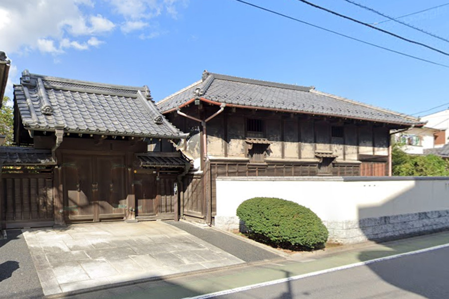 リノベーション前の外観。左が正門(薬医門)、右が納屋蔵(東ノ蔵)。/Google ストリートビューより 2020年