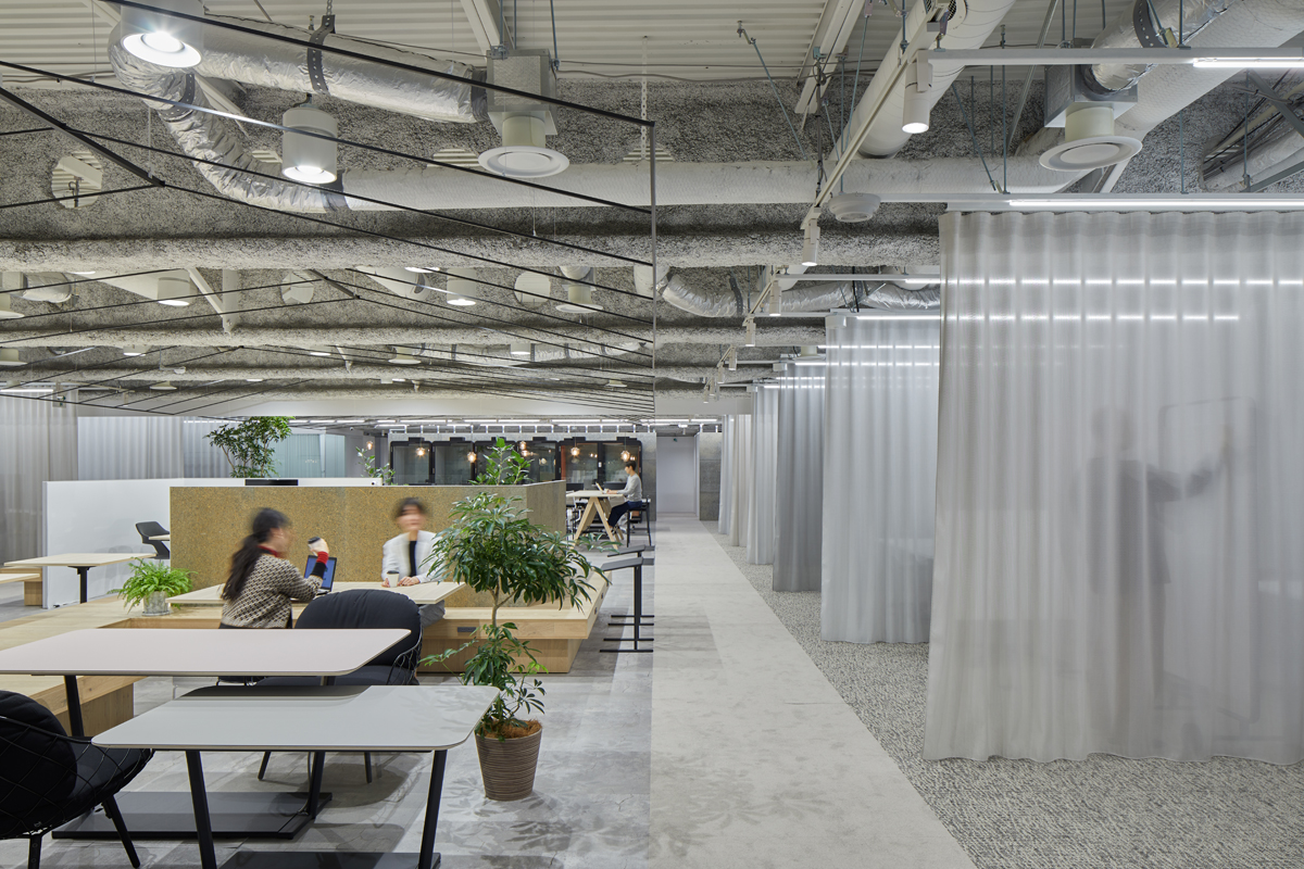 8F「集う」フロア。カーテンで区切って使えるなど、プロジェクトチームが集まって働く場/提供:コクヨ