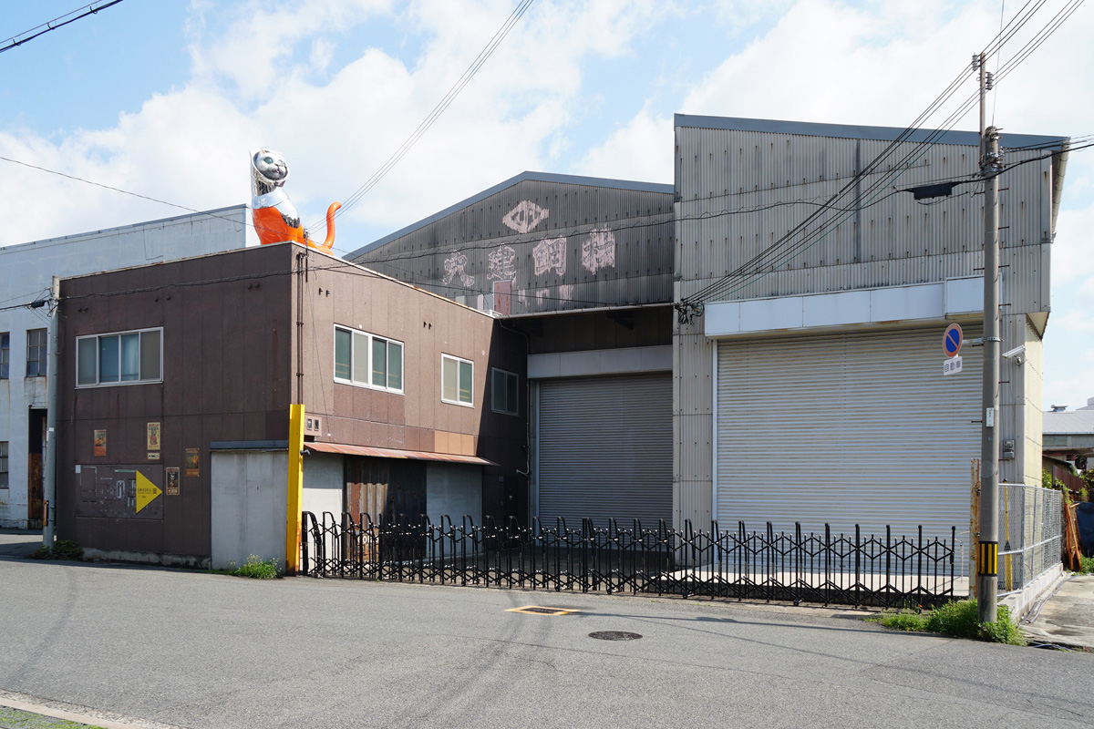 外観:屋上に設置されたヤノベケンジ氏が制作した「SHIP'S CAT(hope)」がなければ一般的な町工場/桐原武志 2026年撮影