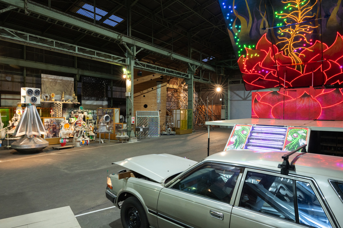 鋼材加工工場・倉庫として使われていた建物をそのまま活用。床面積 約1,030㎡(52.5×19.5m)、高さ 9.25m。事務所跡を改装したホワイトキューブ(展示スペース)と簡易レジデンスを併設。